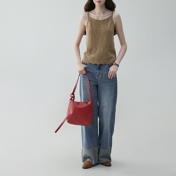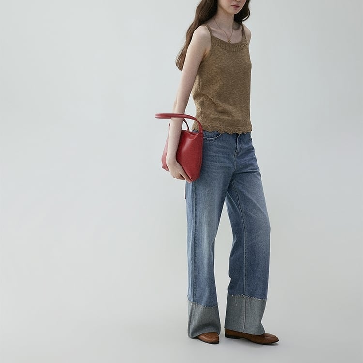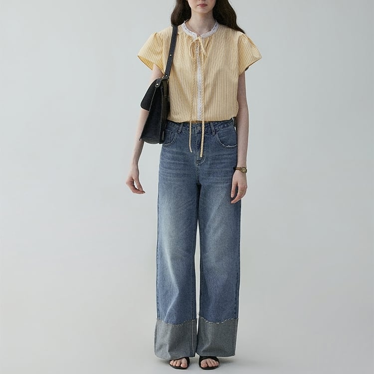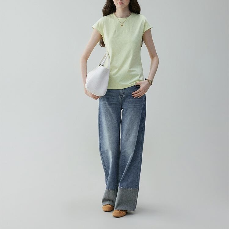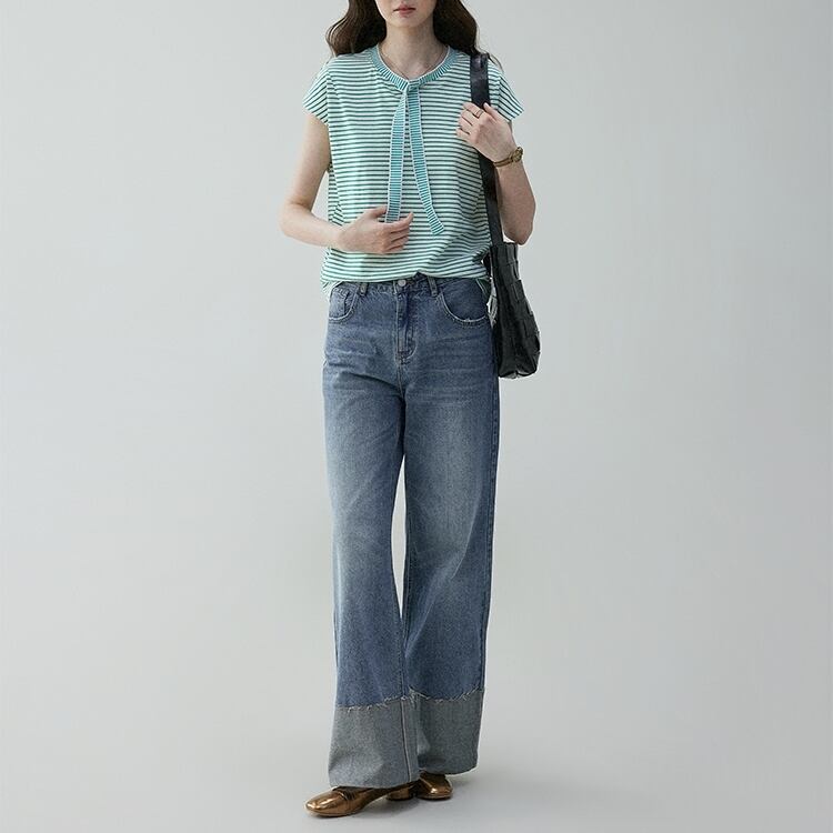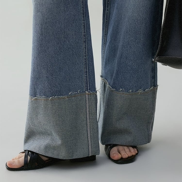 脚のラインを美しく見せるハイウエストデザインとワイドシルエットが魅力のデニムパンツ