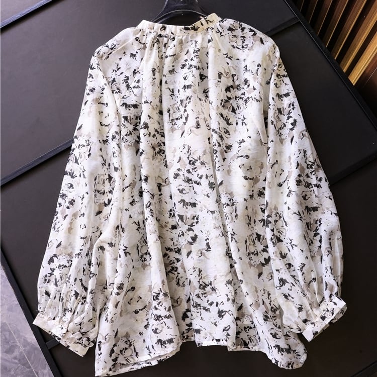 Sheer Floral Print Puff Sleeve Blouse TO0906