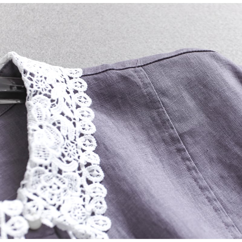 Linen Lace Collar Sleeveless A-Line One piece