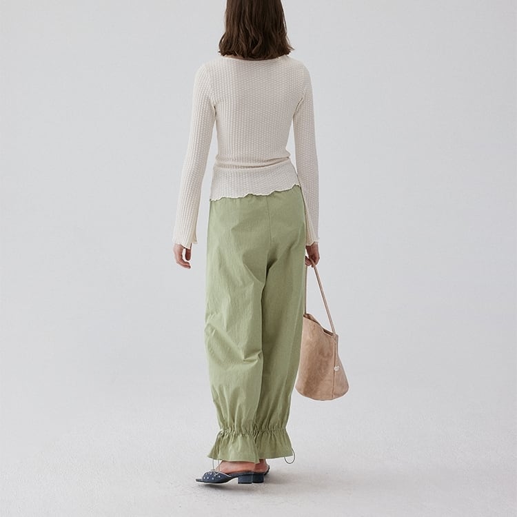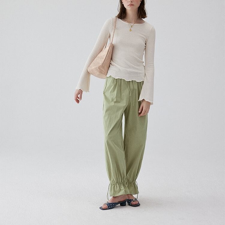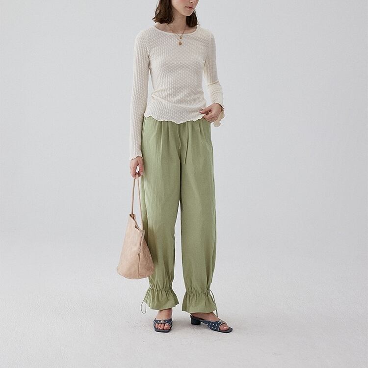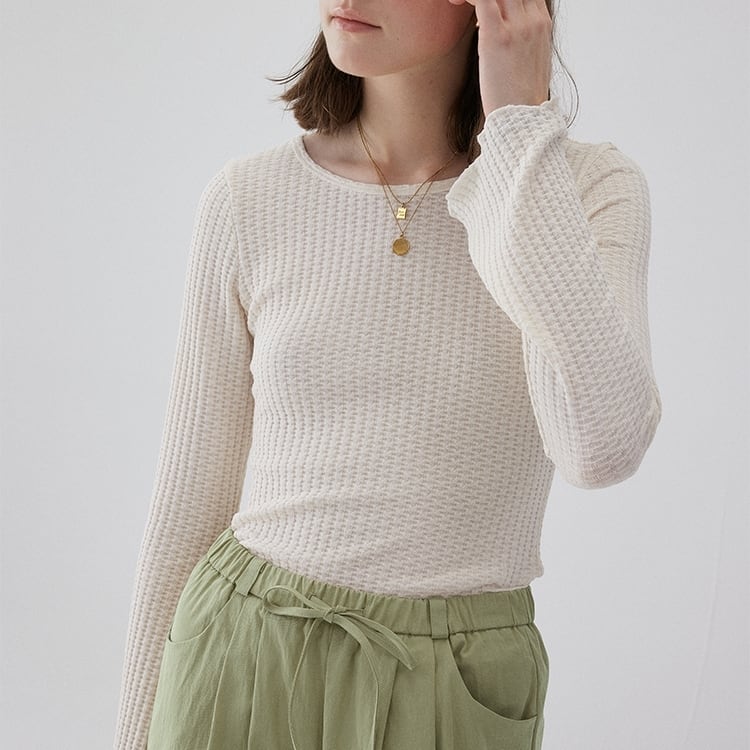 ワッフル素材の程よい凹凸感とフレアスリーブが可愛いトップス
