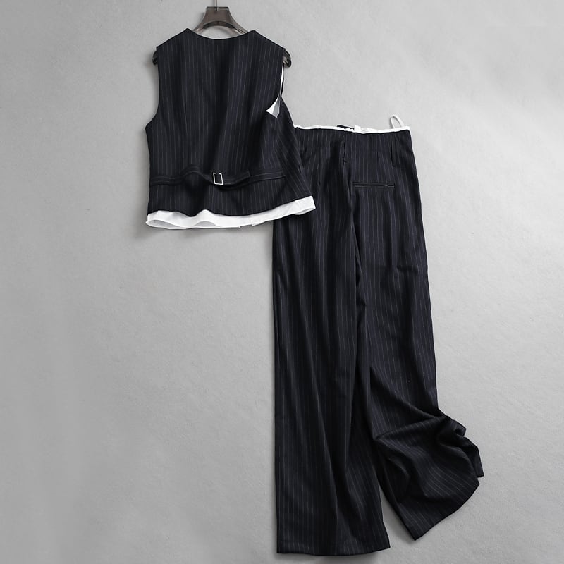 Stripe Pattern Vest & Tailored Pants Set ST0007