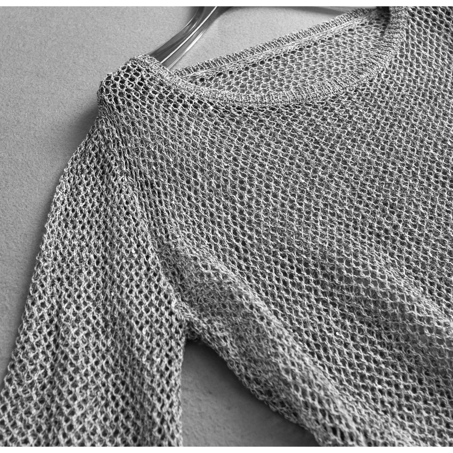 レイヤードスタイルに最適なメッシュ編みのルーズニット