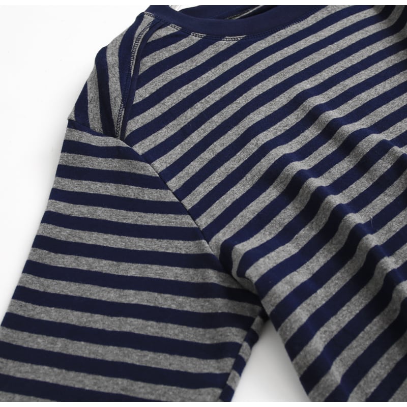 ネイビーとグレーのボーダー柄が爽やかなカットソー