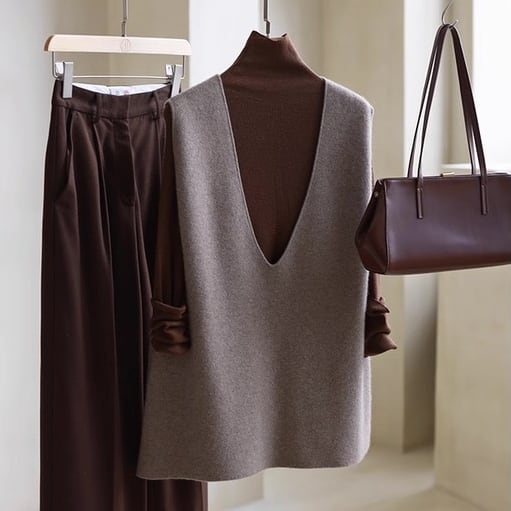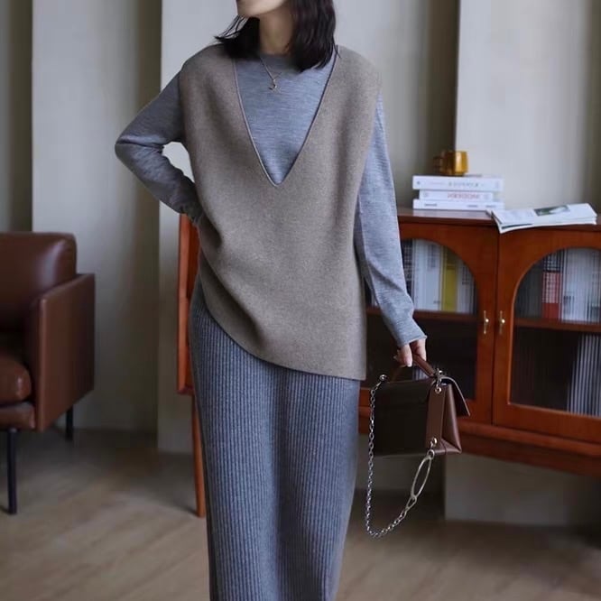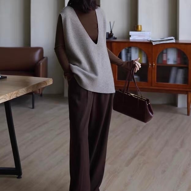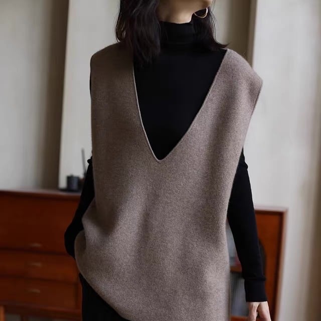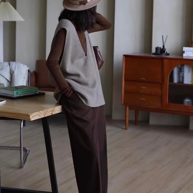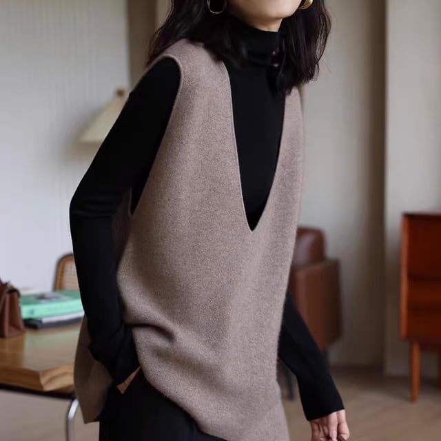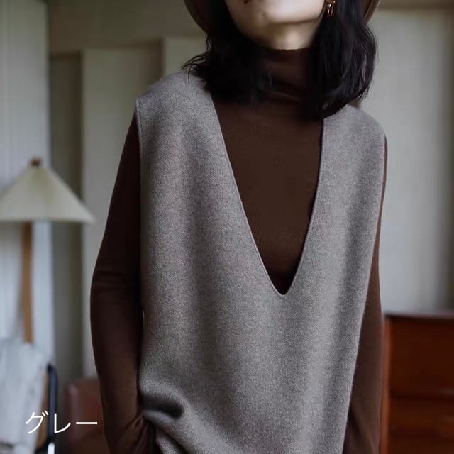 深めのVネックが顔周りをすっきりと見せてくれ、カジュアルからきれいめスタイルまで着こなしの幅が広がるアイテム♪