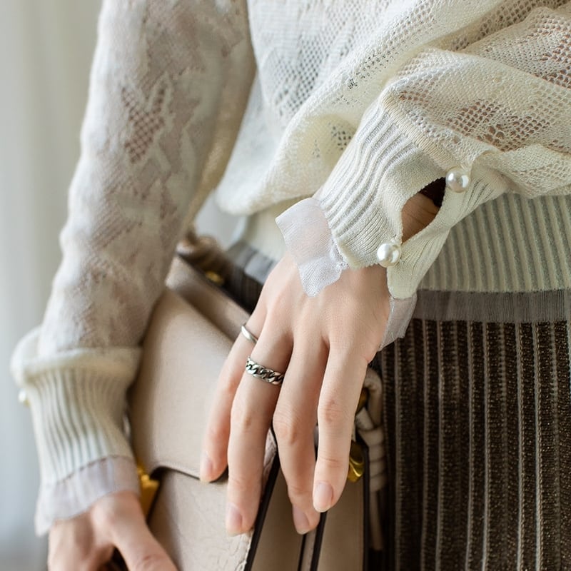 首元と袖口のフリルが、さりげない可愛らしさをプラス♪