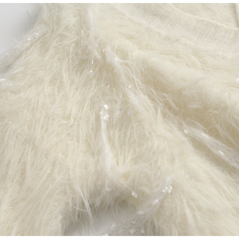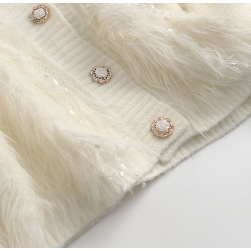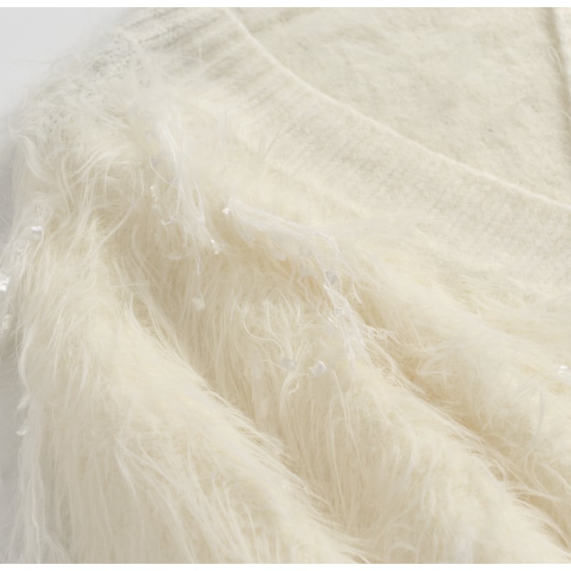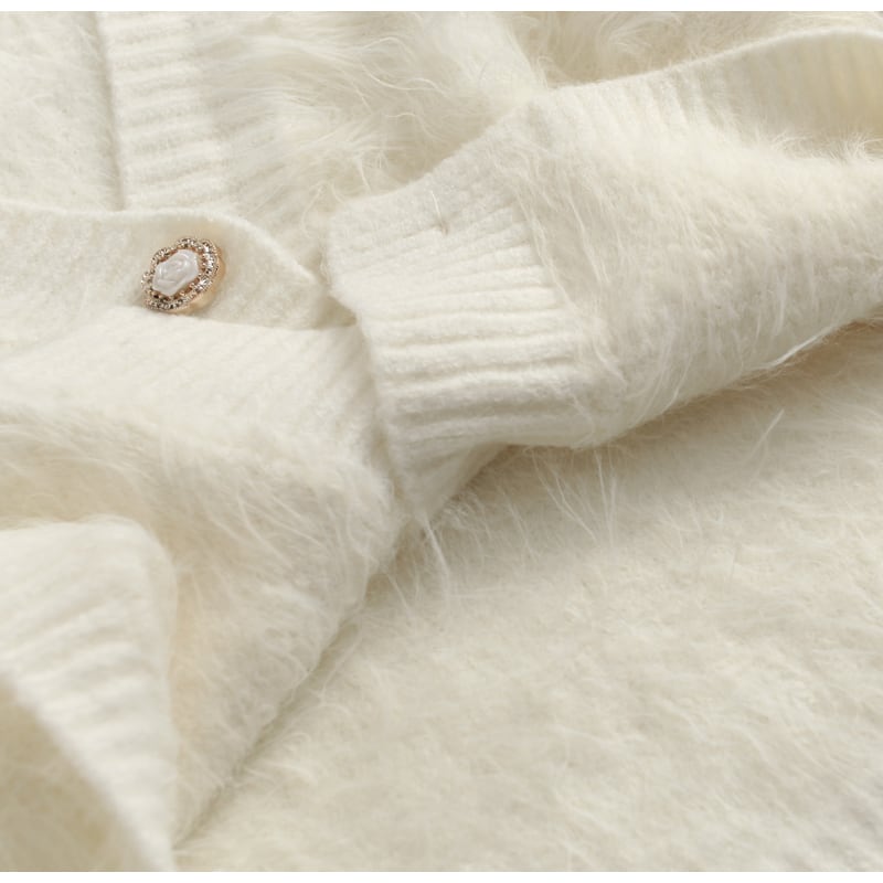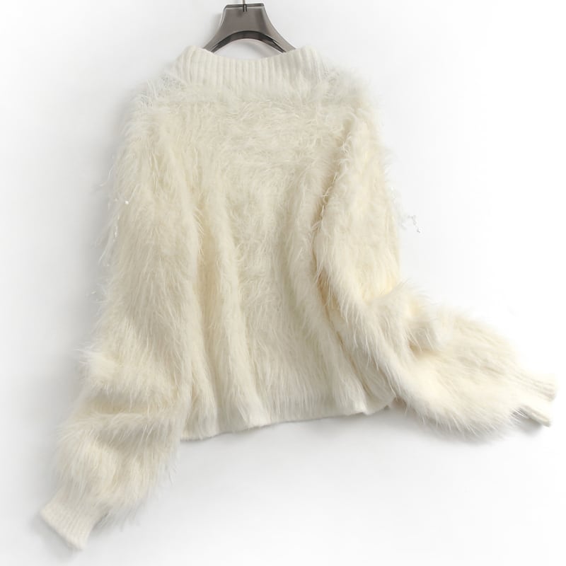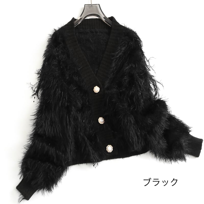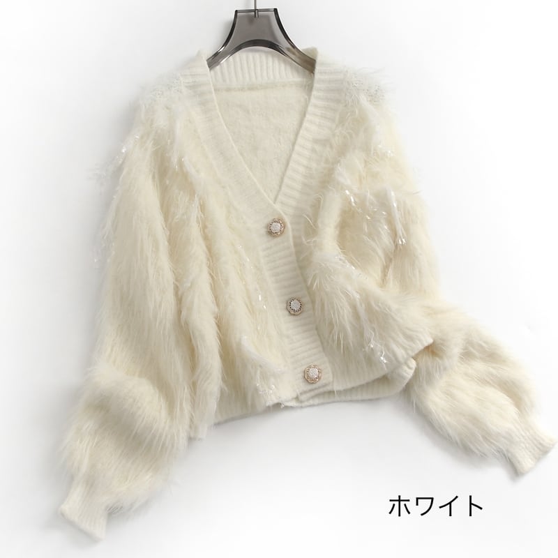 ボリュームスリーブが女性らしいシルエットを演出するニットカーディガン
