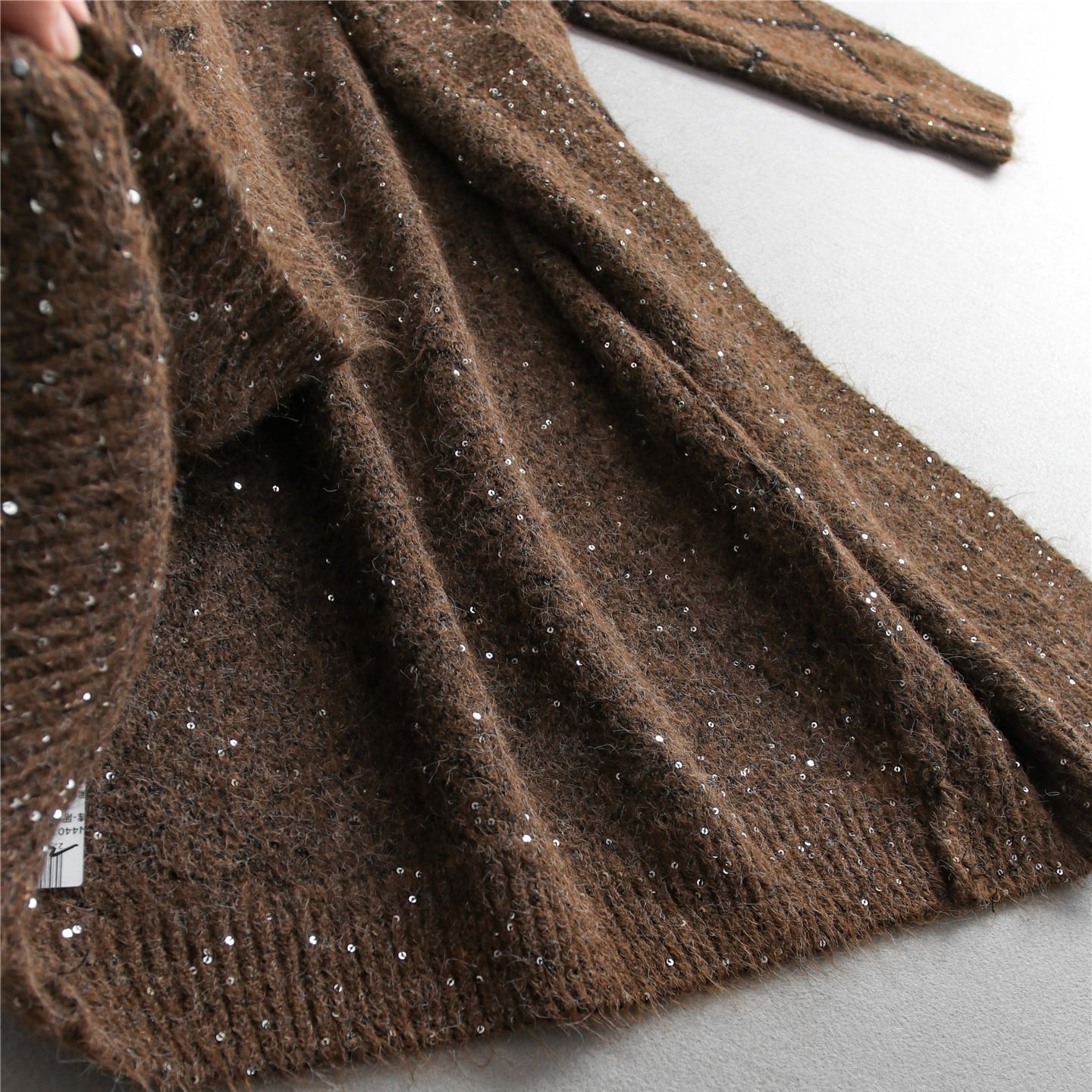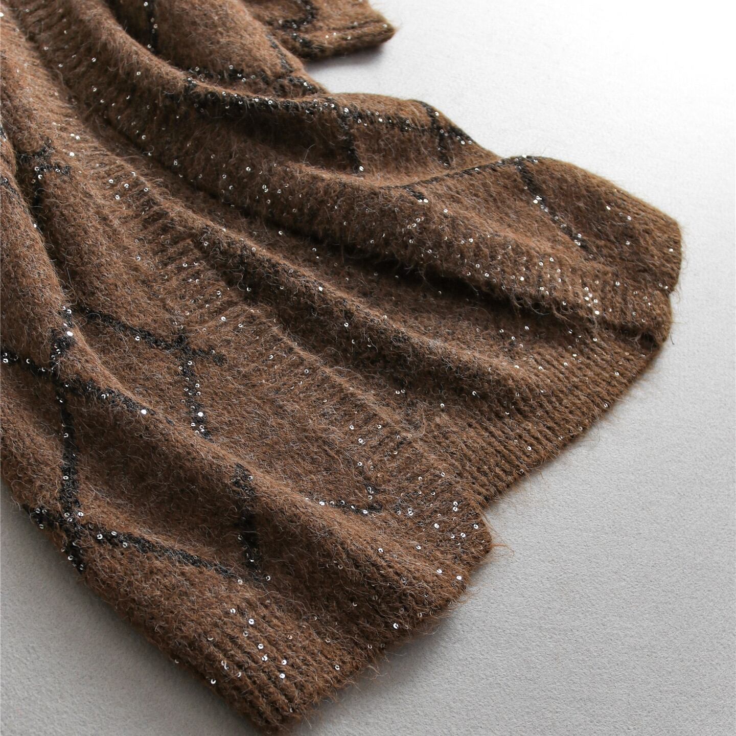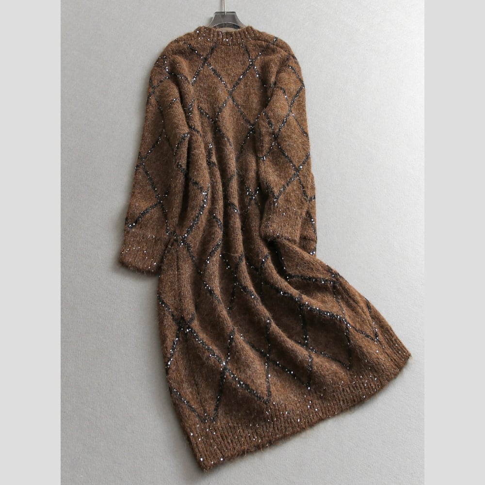 上品な輝きを放つスパンコールが編み込まれたロングカーディガン