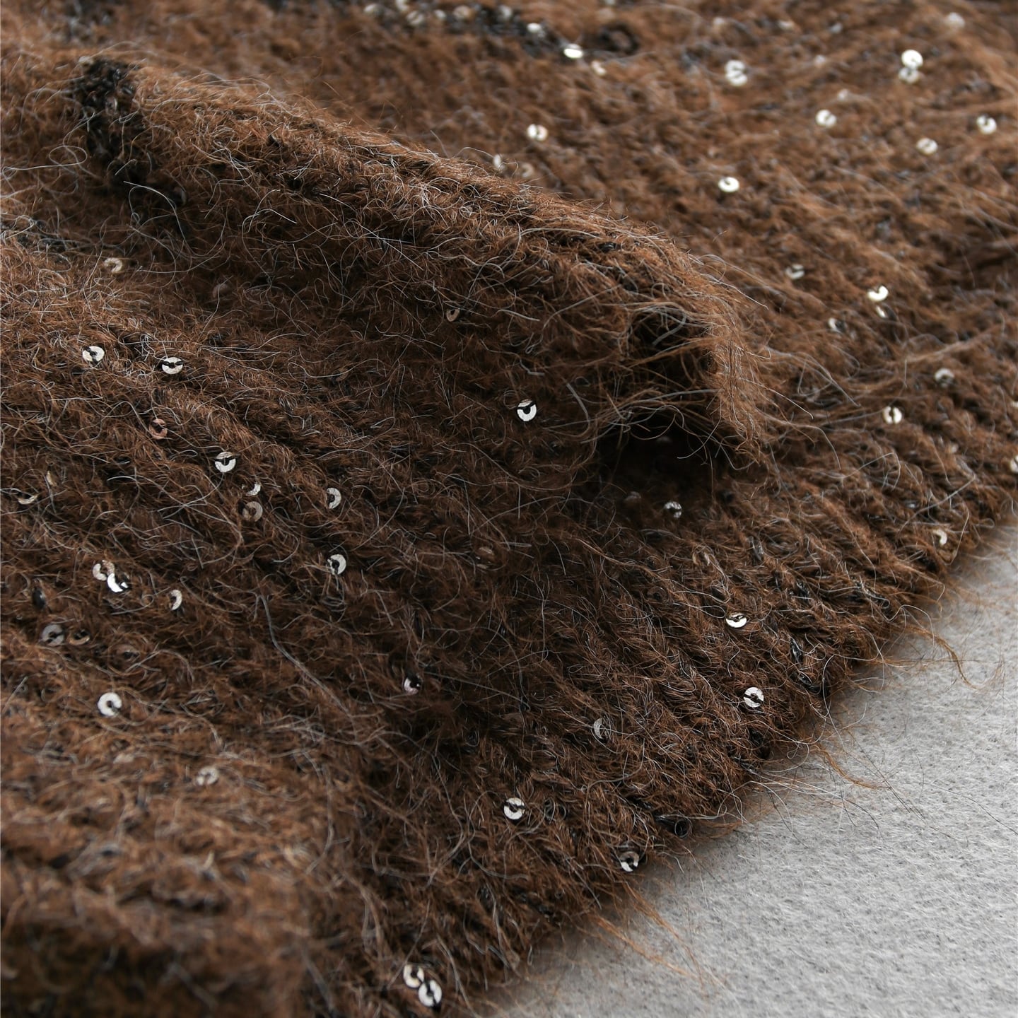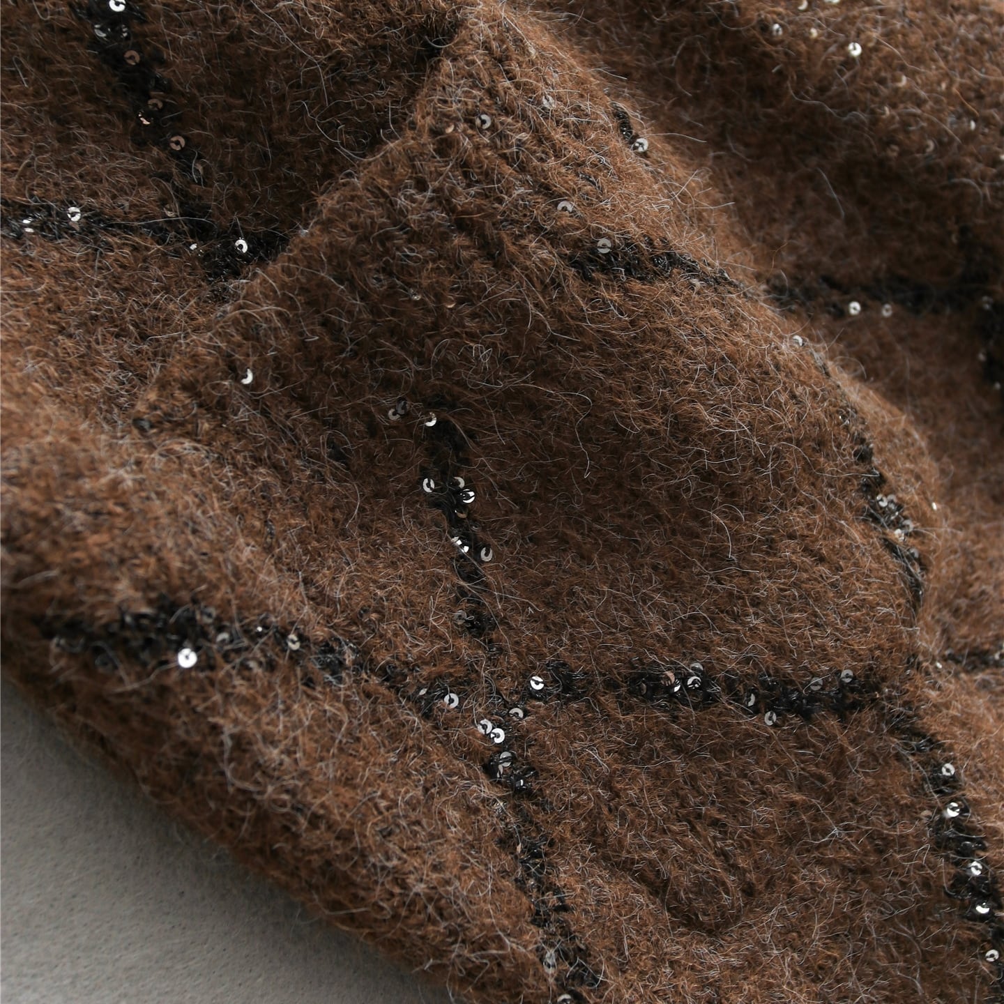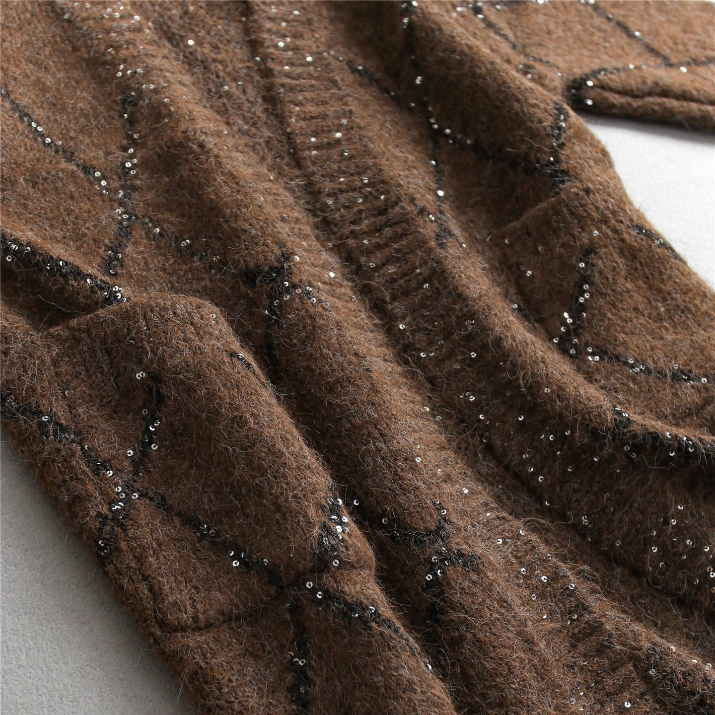 上品な輝きを放つスパンコールが編み込まれたロングカーディガン