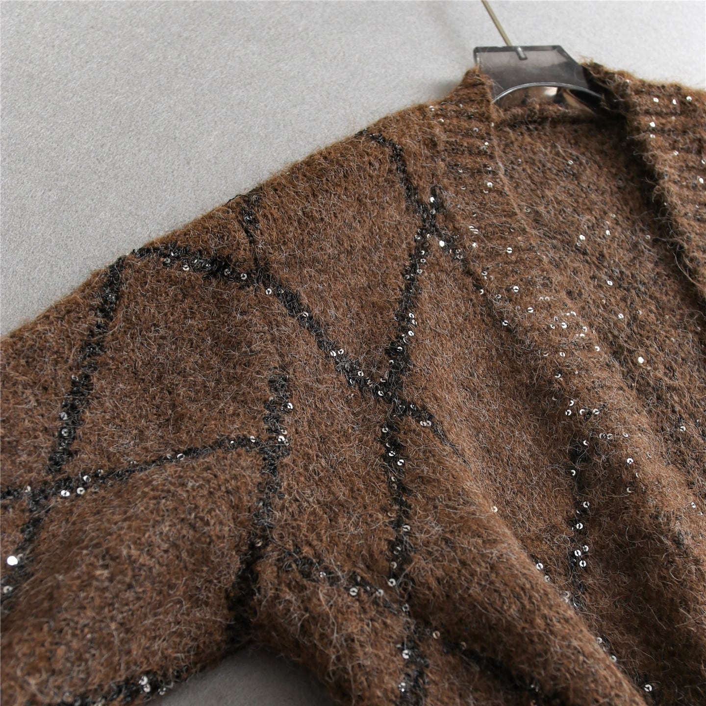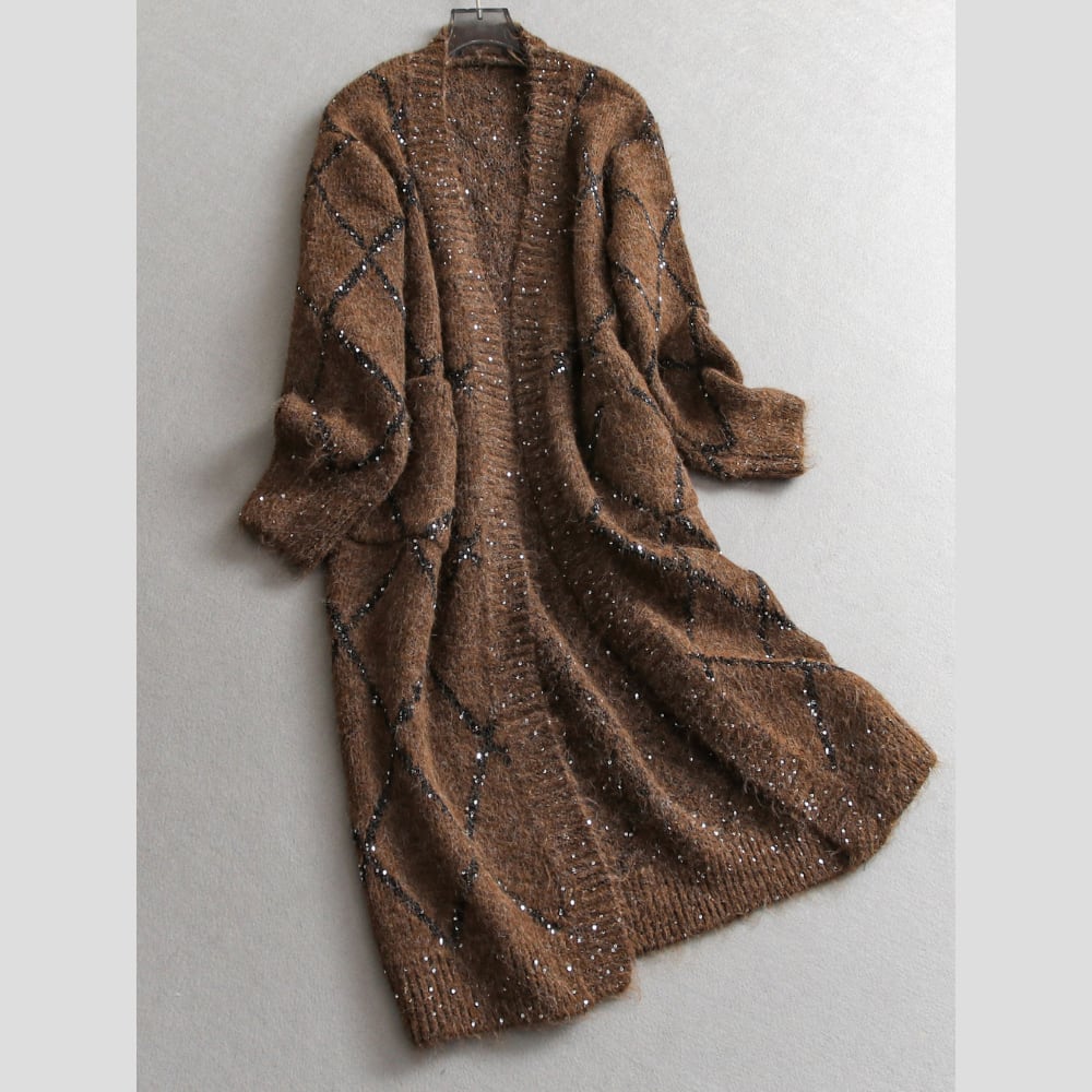 Sequined long knit cardigan