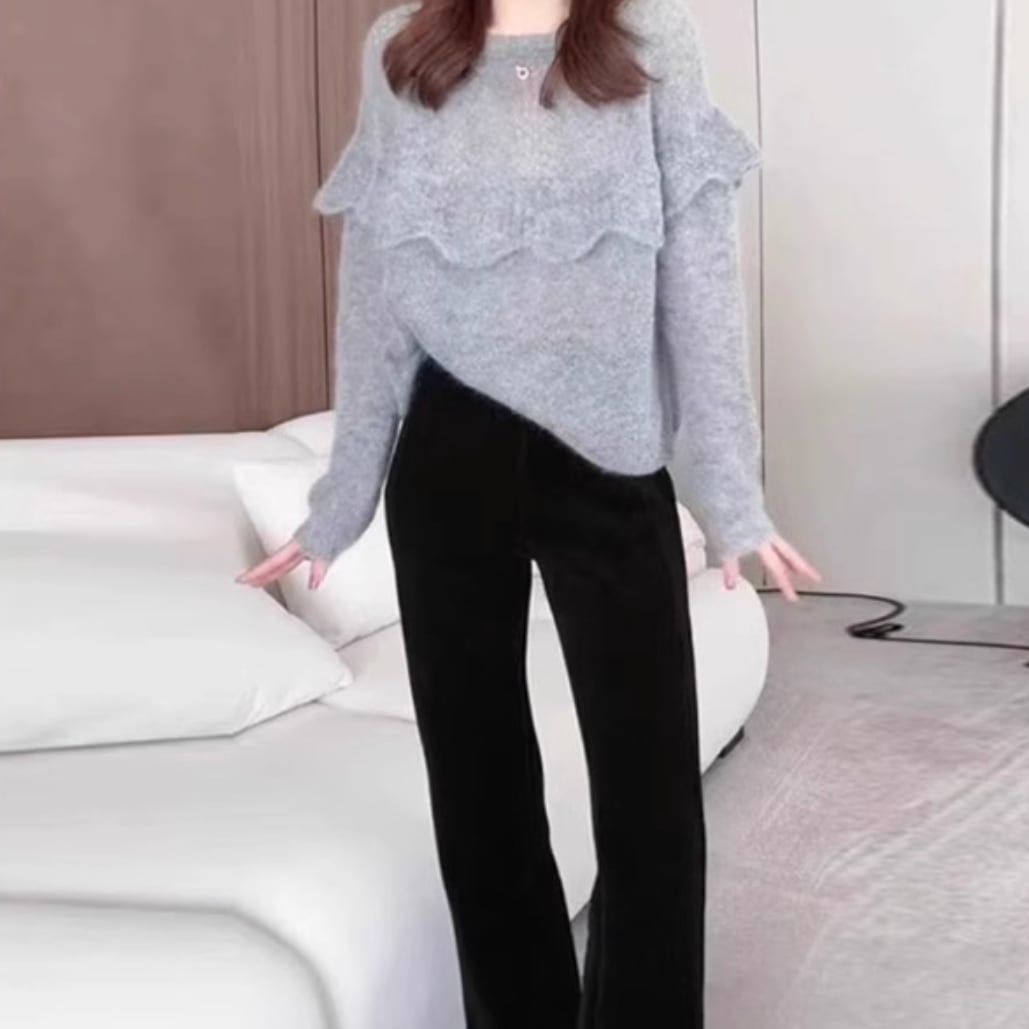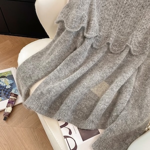 Soft Fuzzy Frill shoulder knit TO0934