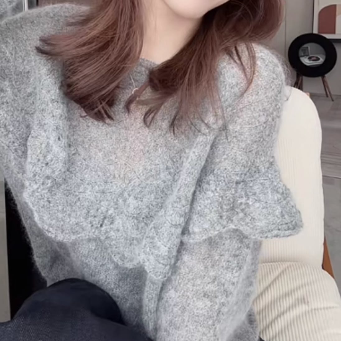 Soft Fuzzy Frill shoulder knit