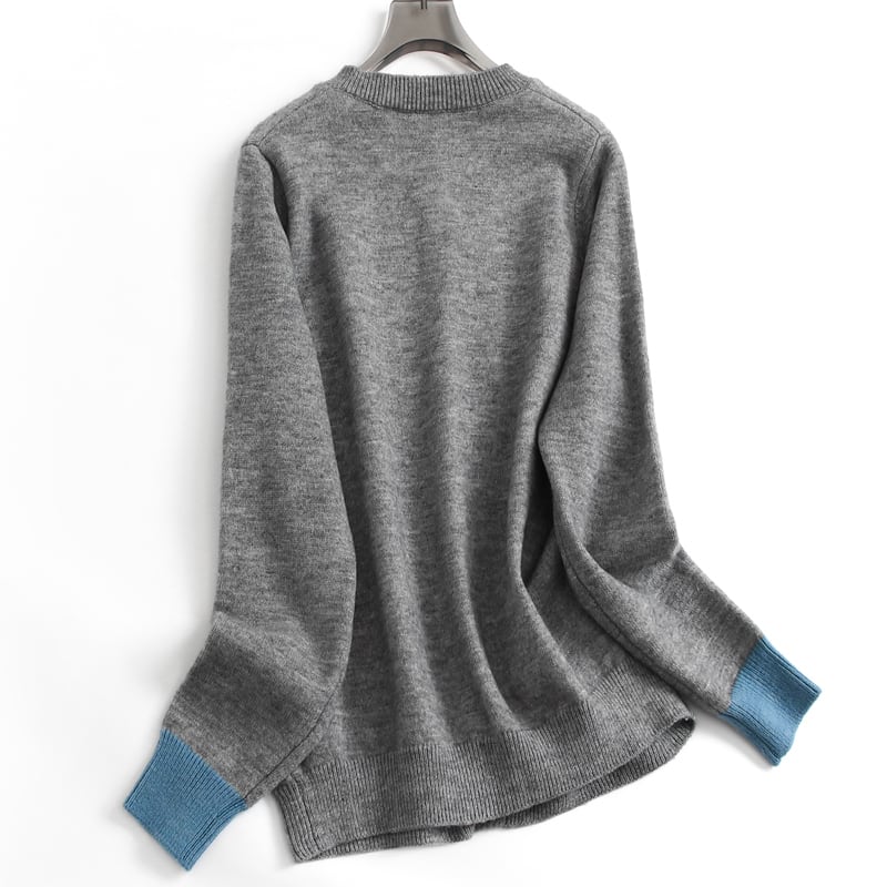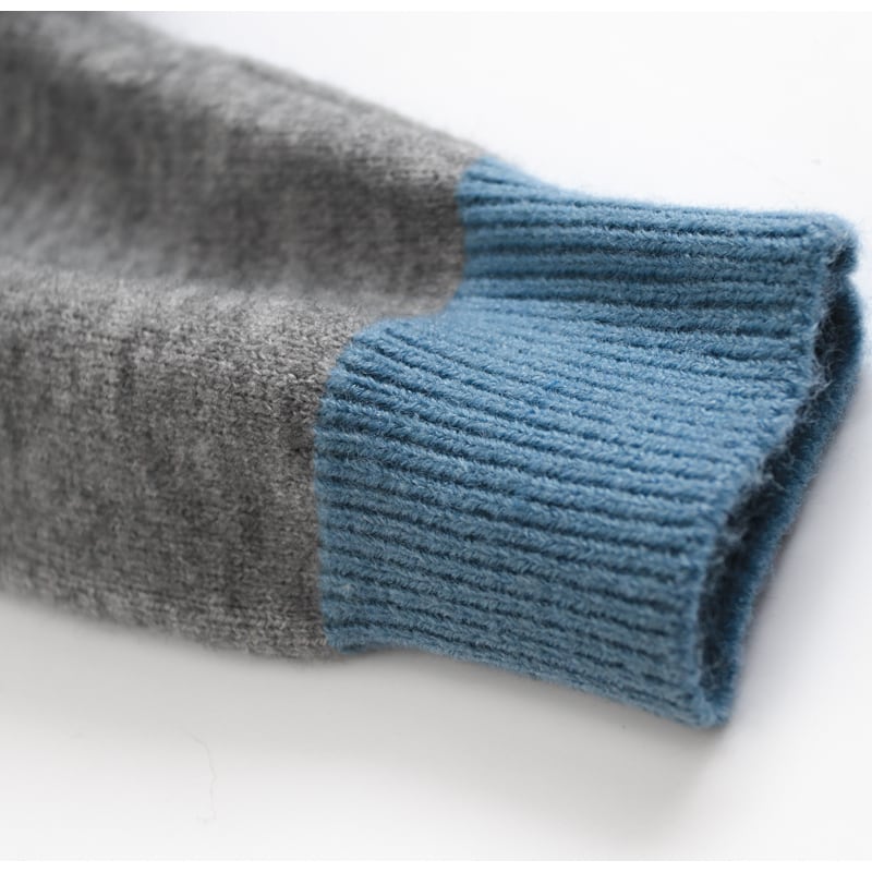 袖口の配色切り替えがさりげないアクセントになり、上品なグレーに遊び心をプラス♪