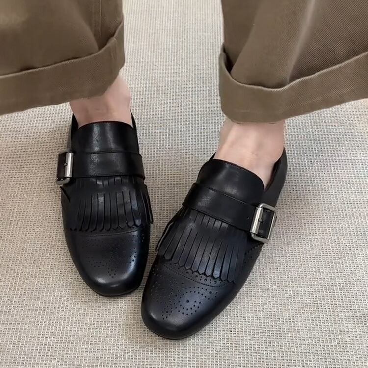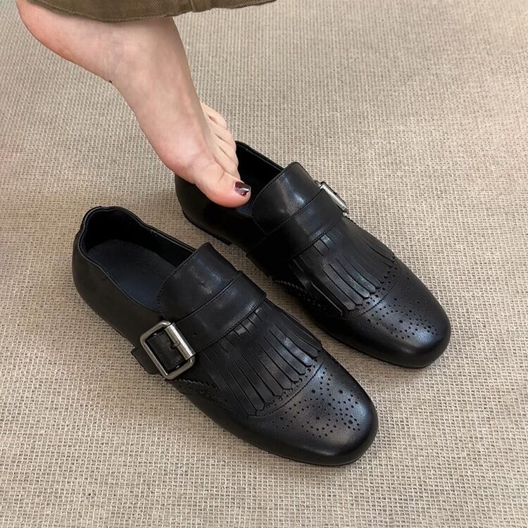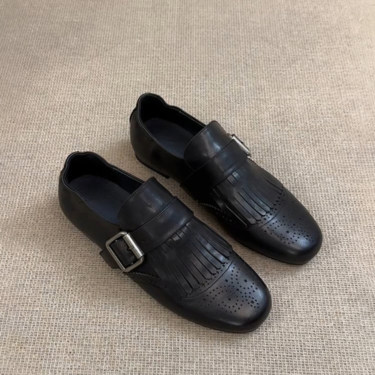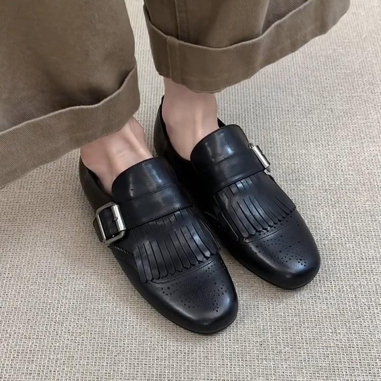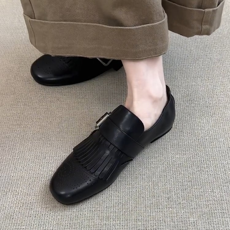 Fringe Square Toe Buckle Loafer