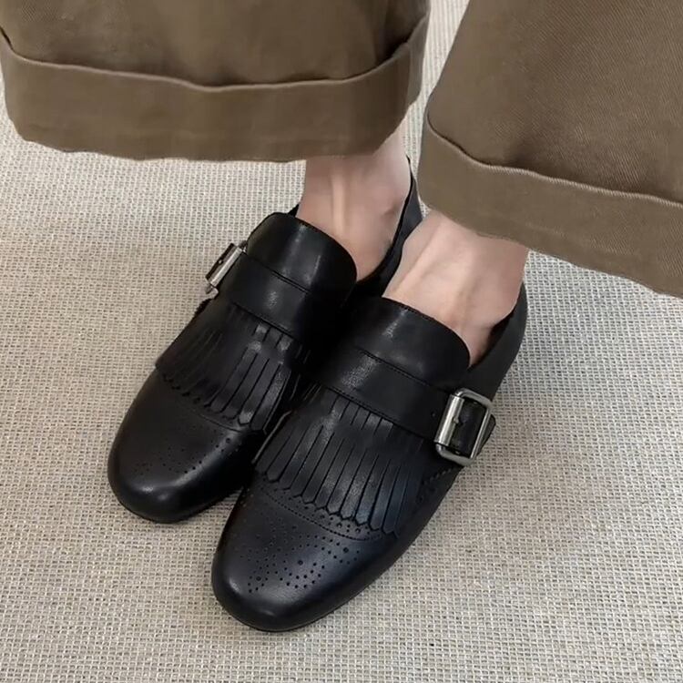 Fringe Square Toe Buckle Loafer SH0128