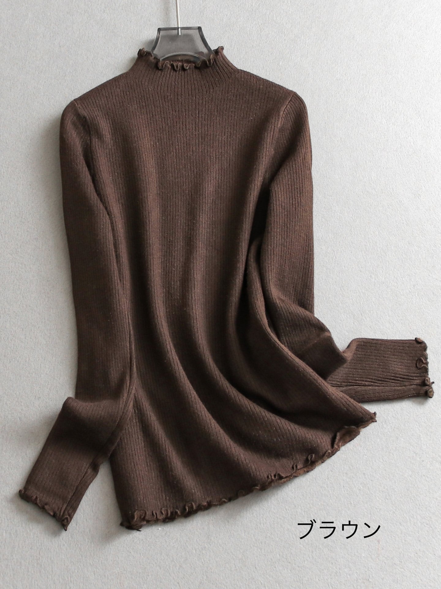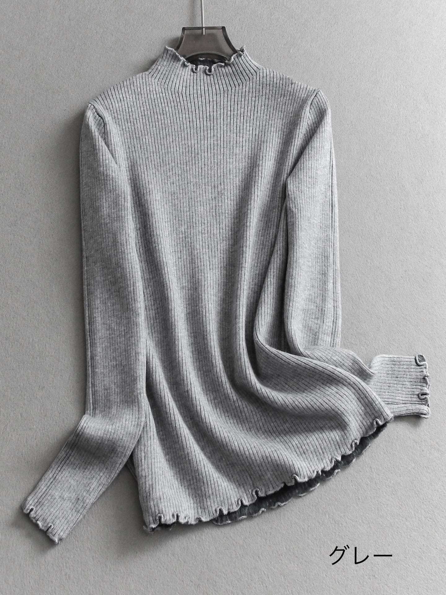 リブ編みで仕立てられた、着心地の良い長袖ニット