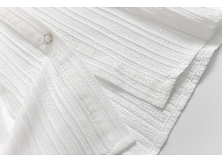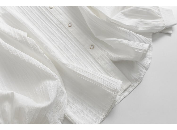 上品なスタンドカラーが印象的なブラウス