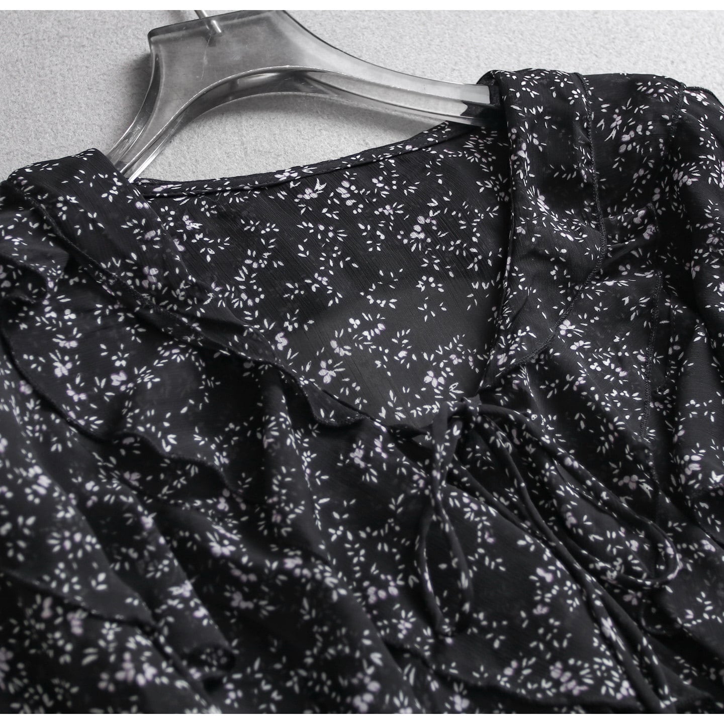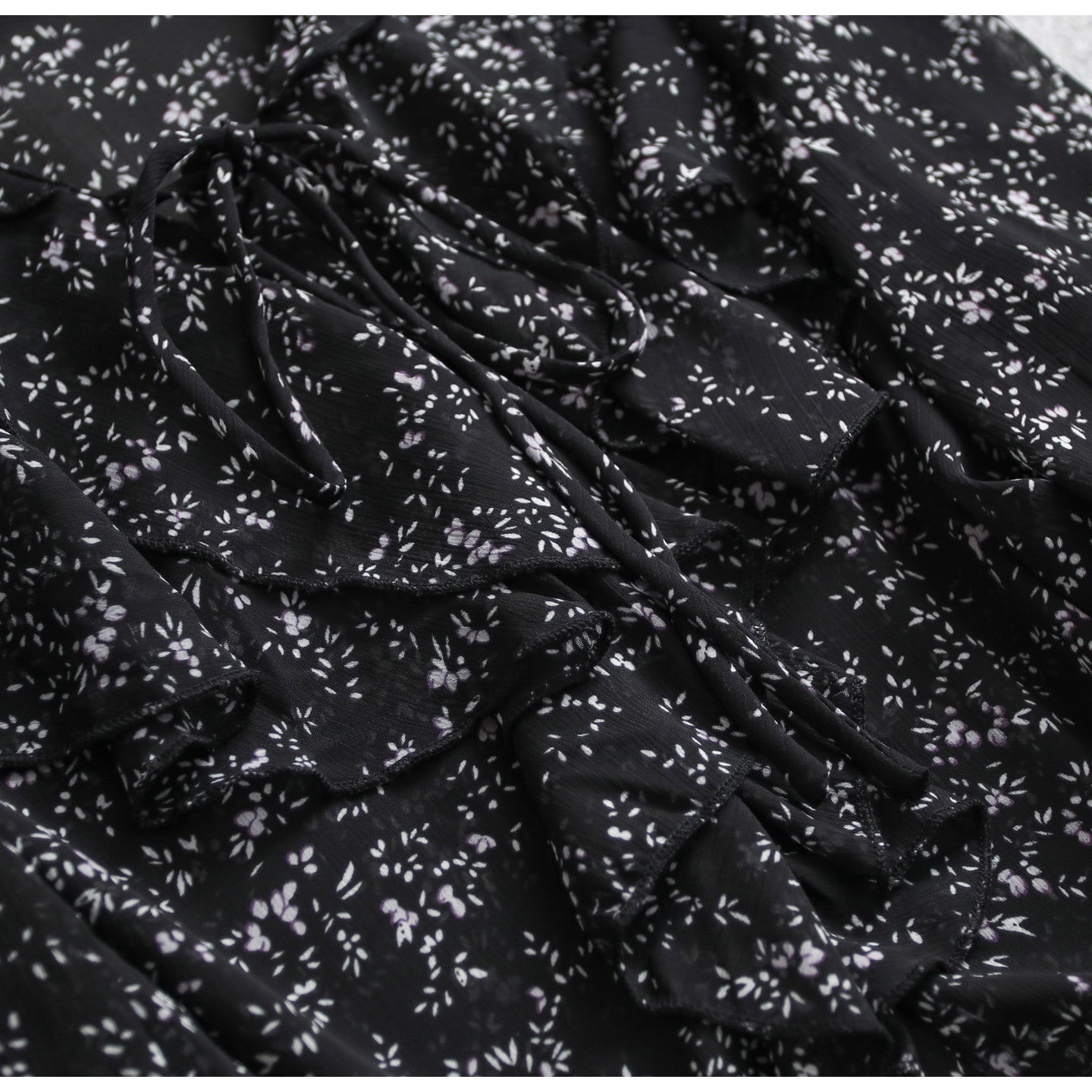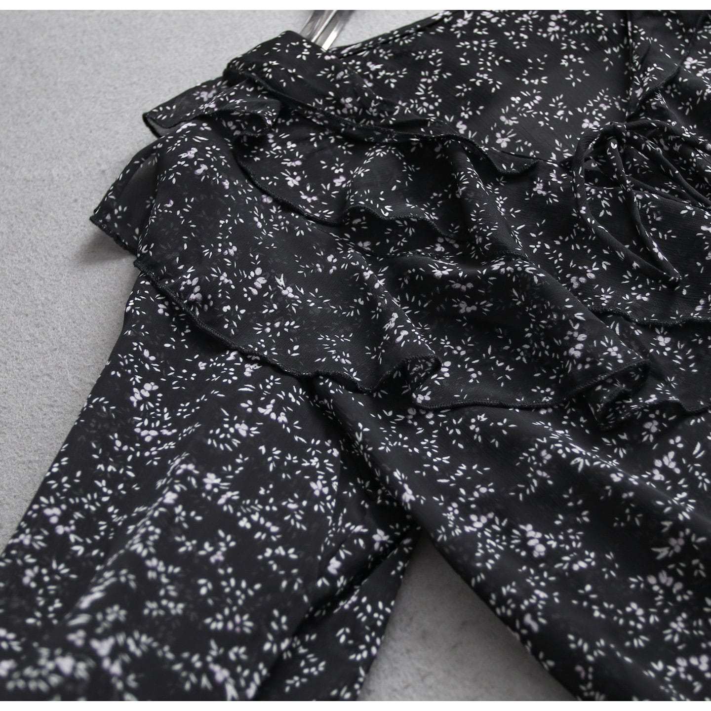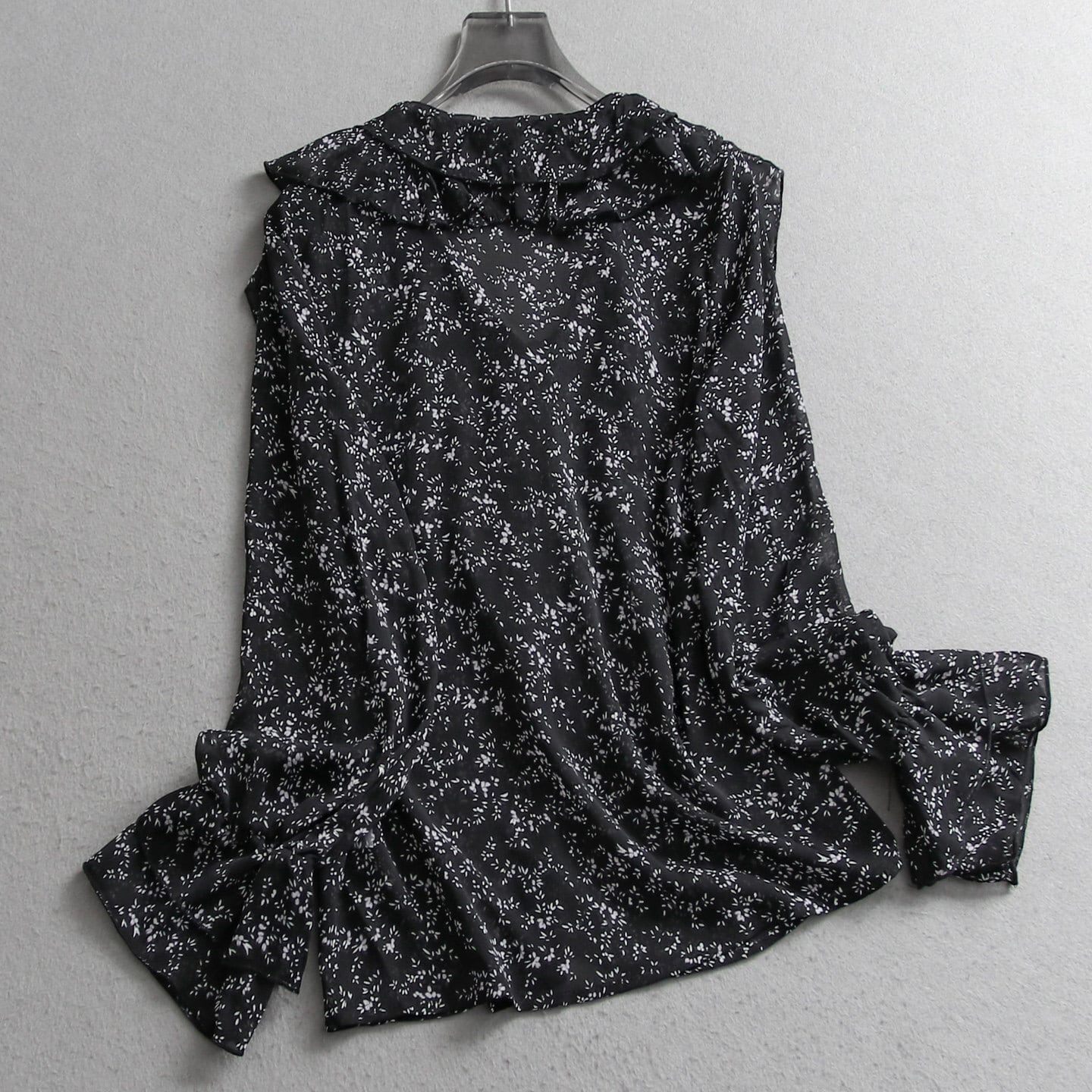 Small floral print chiffon ruffle blouse