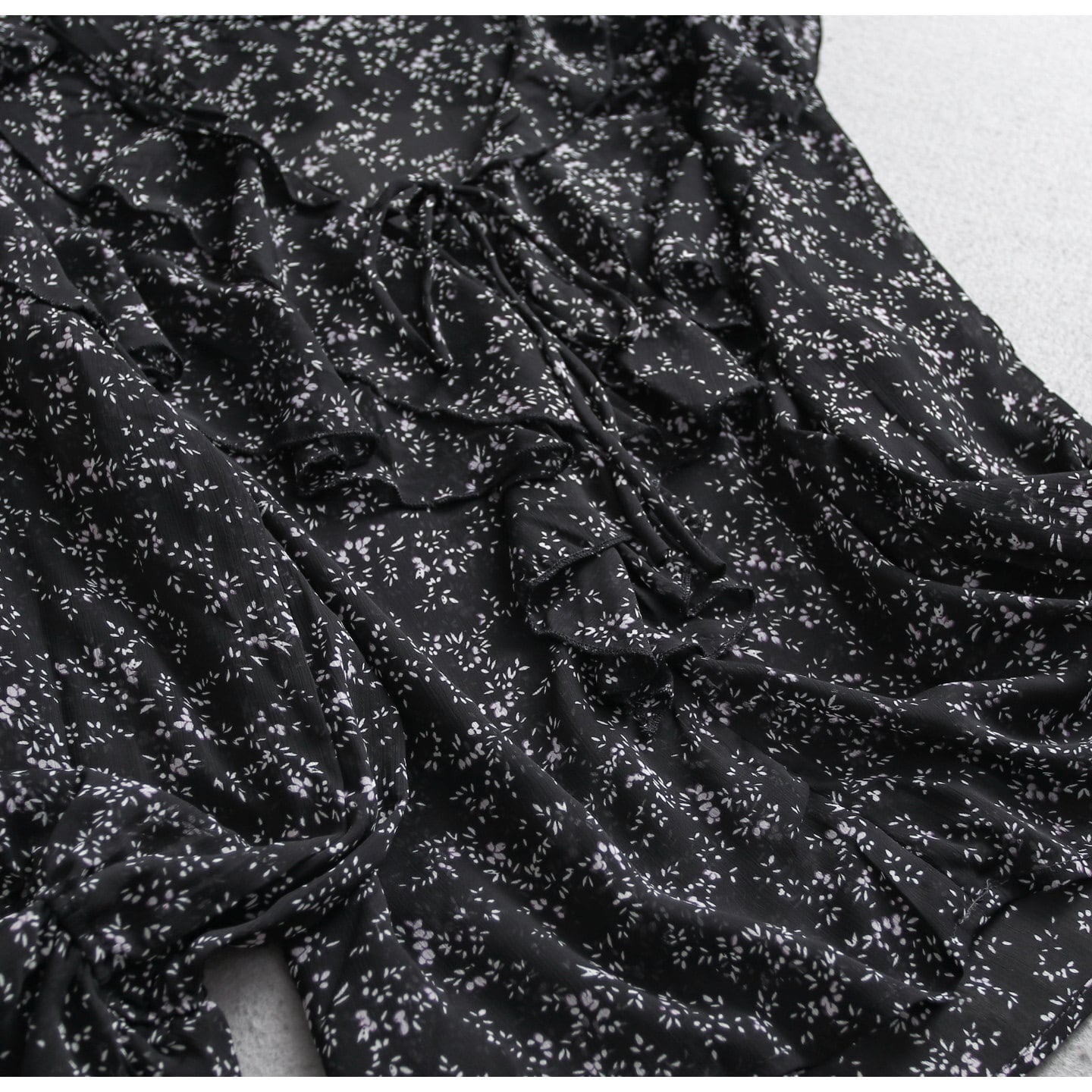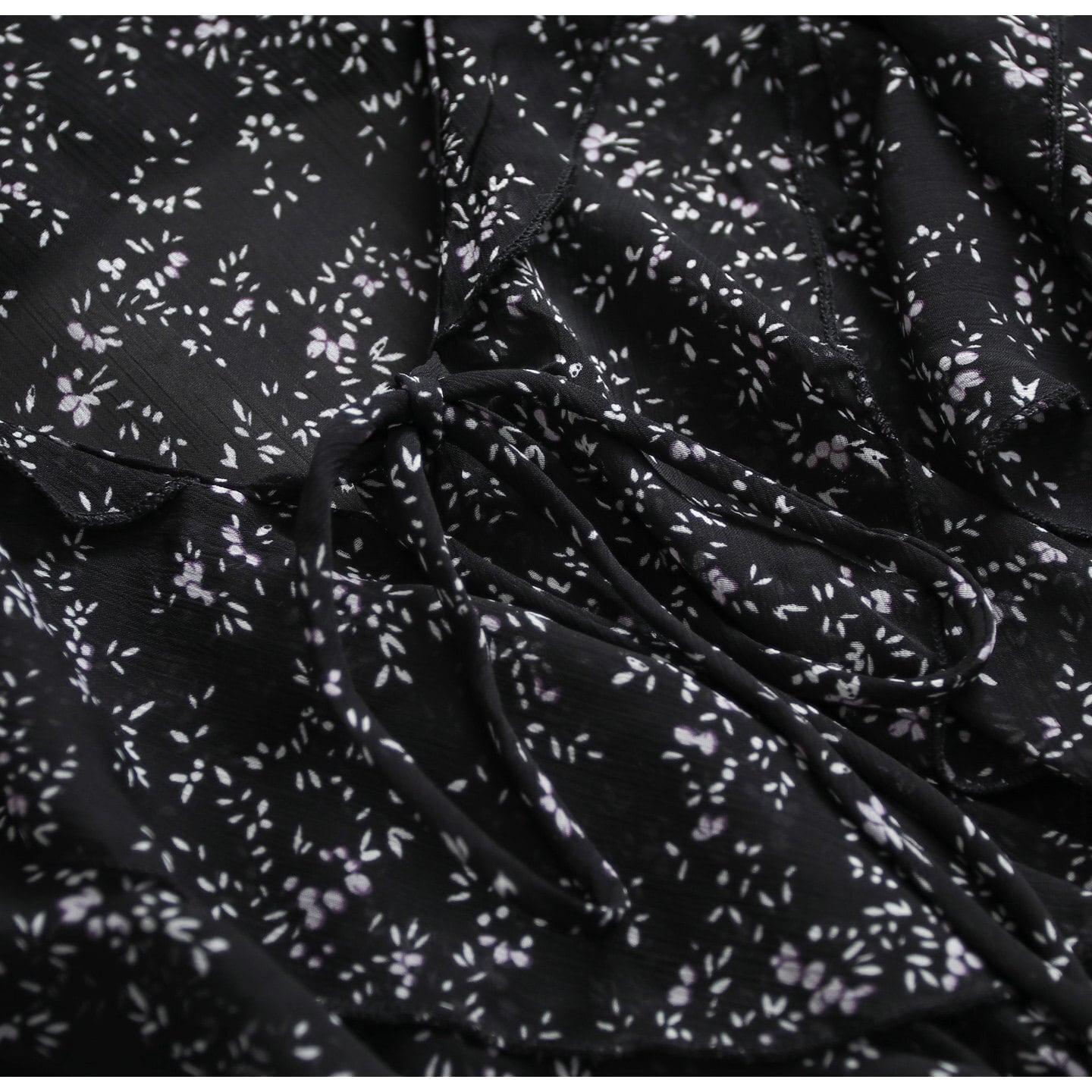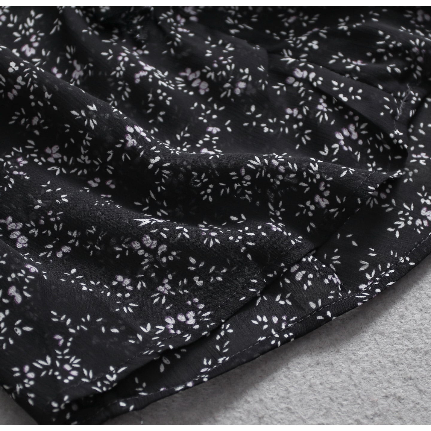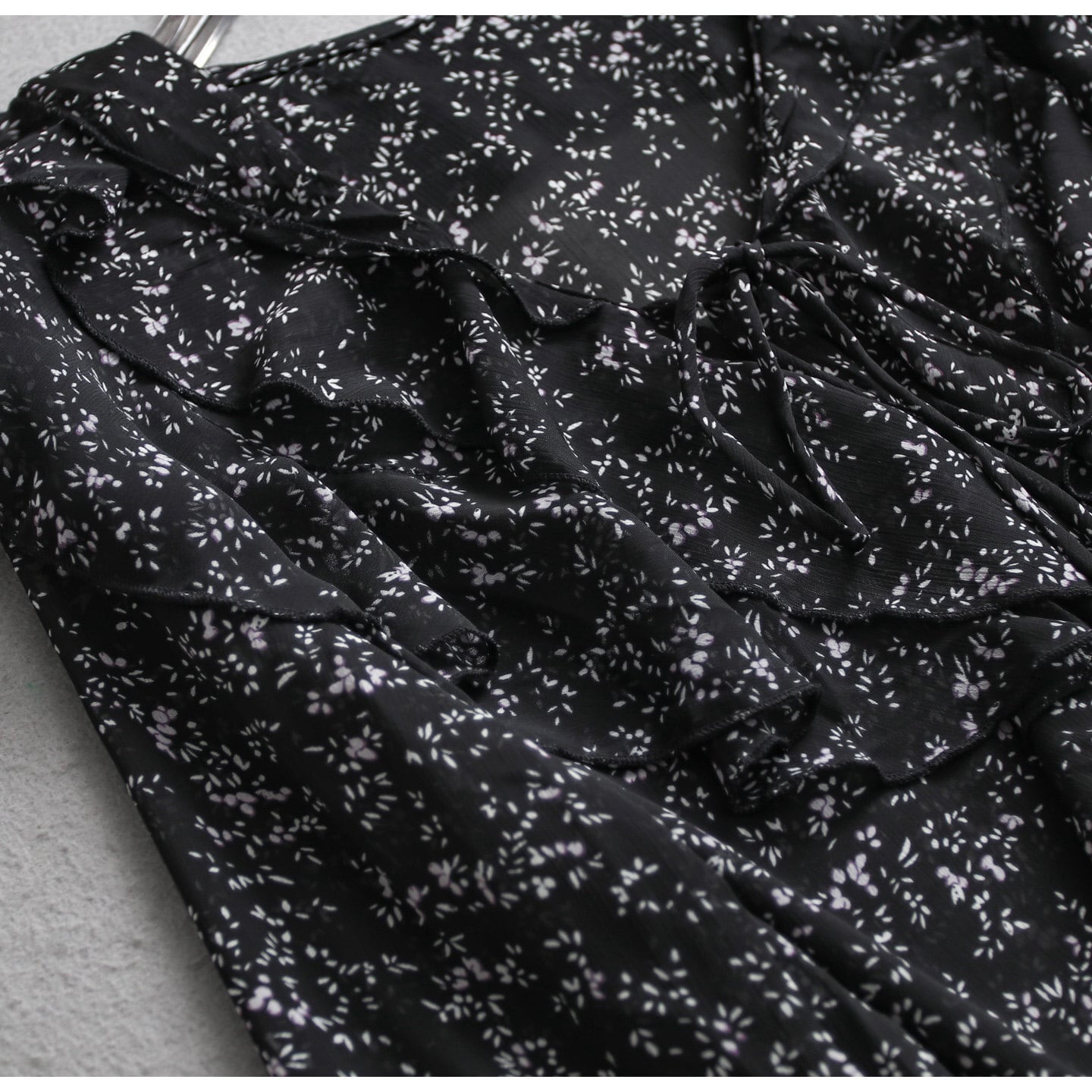 Small floral print chiffon ruffle blouse