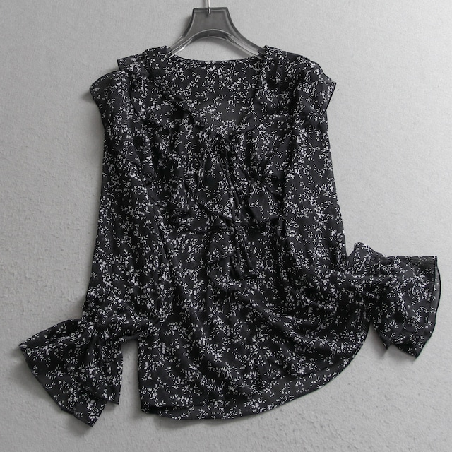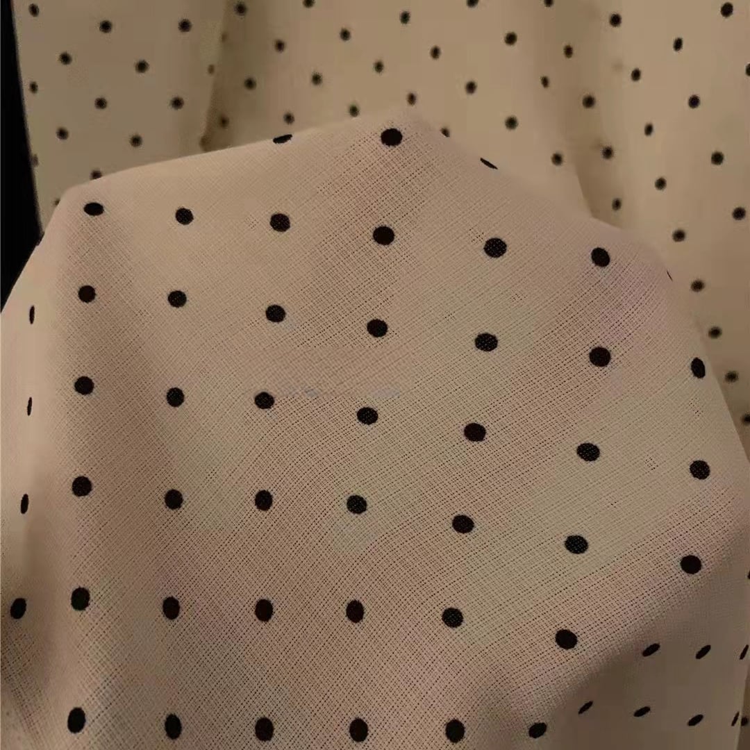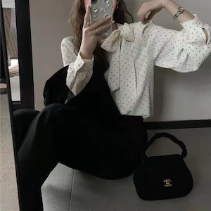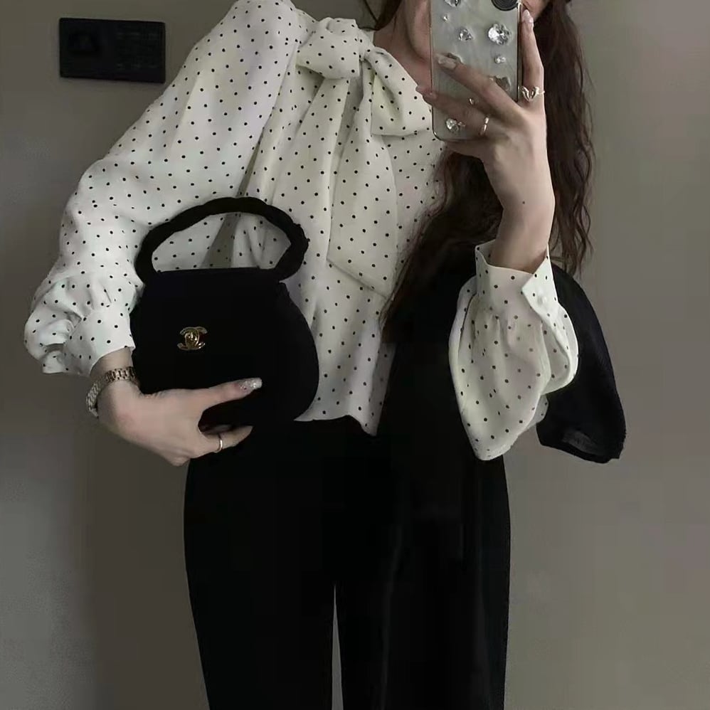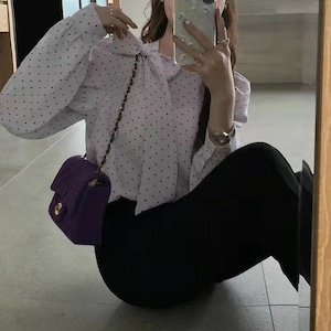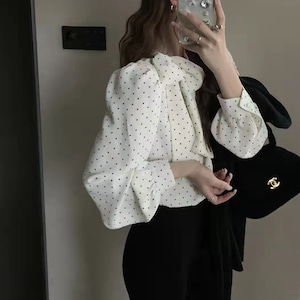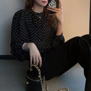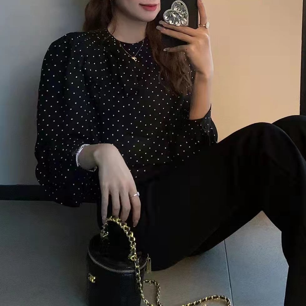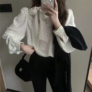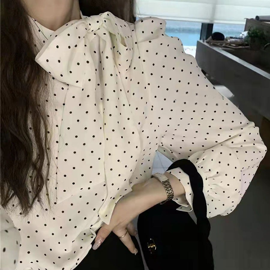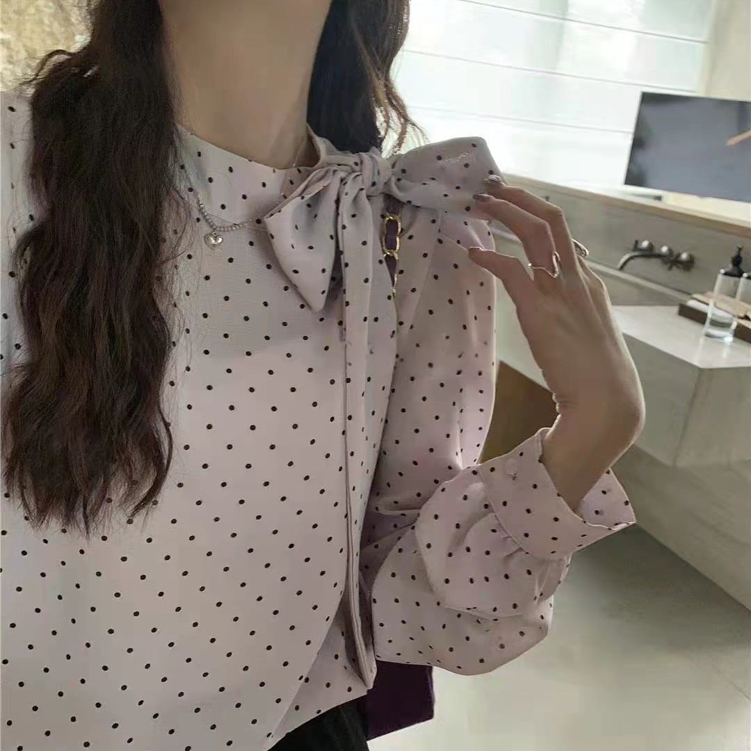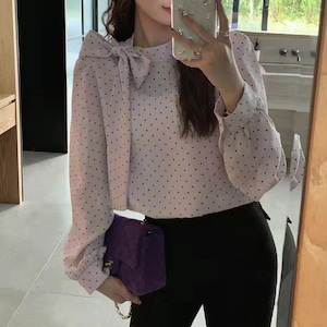 ドット柄がフェミニンな印象の長袖ブラウス