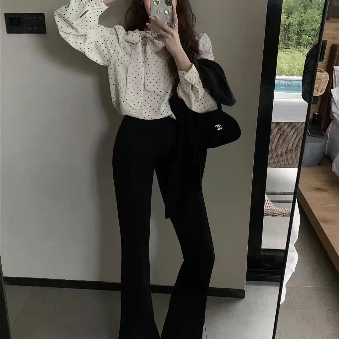 Bow Tie Long Sleeve Polka Dot Blouse TO0966