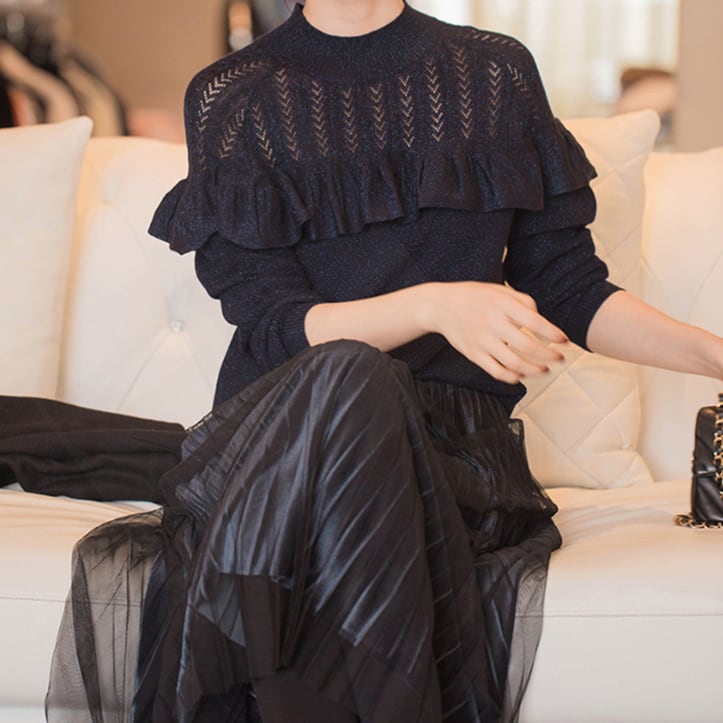 ラメと透かしの入ったレトロなフリルニット