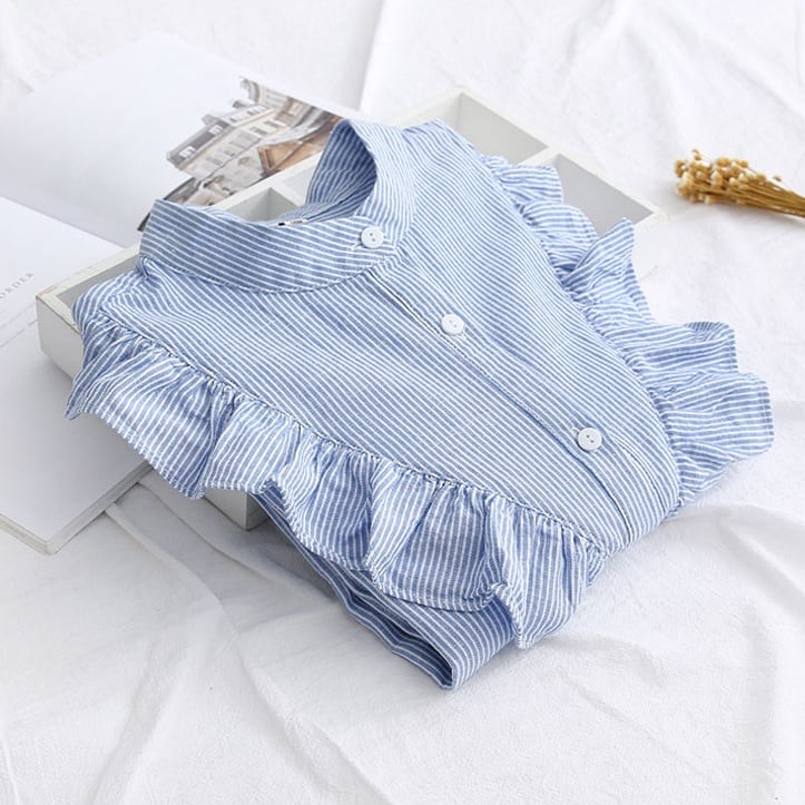 【人気商品】Light blue striped frilled shirt TB-TO-0395