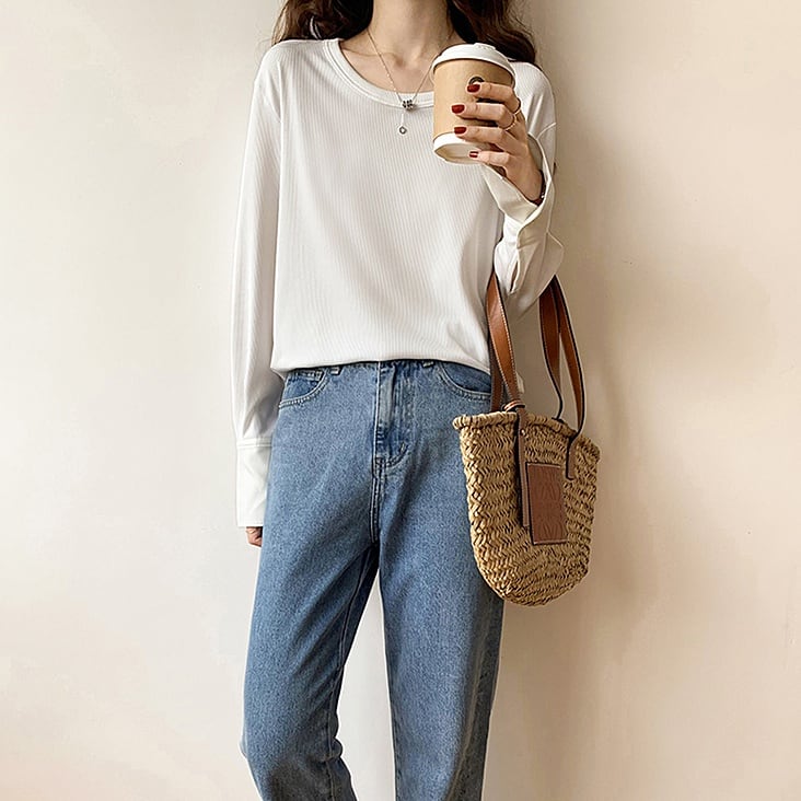 袖部分の切り替えでおしゃれ度アップのラウンドネックカットソー