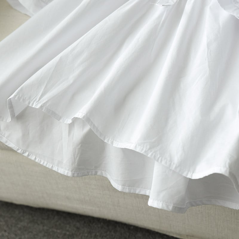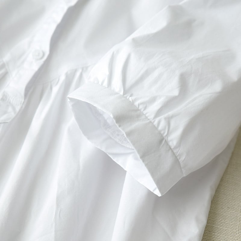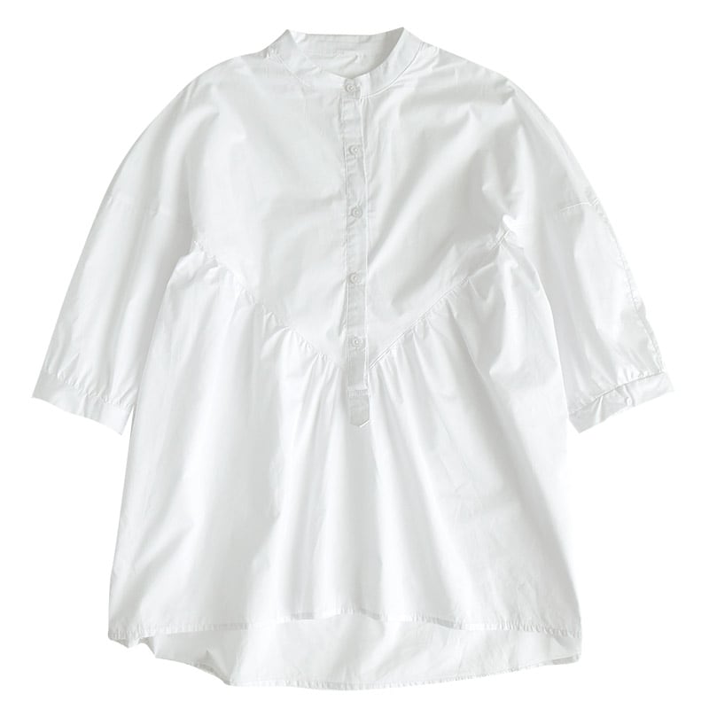 シンプルに着こなせる真っ白なスタンドカラーシャツ
