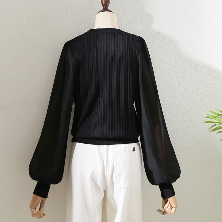 ニットとシフォンブラウスのドッキングで春先も活躍するアイテム♪