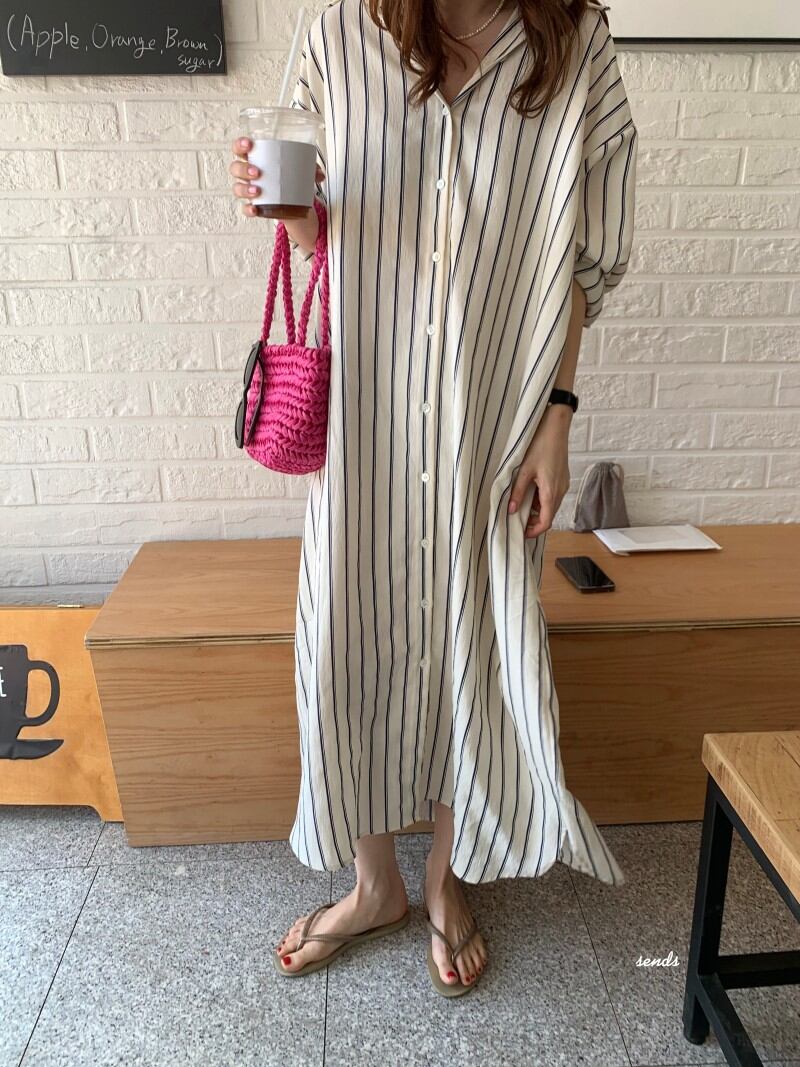 striped long shirt one piece OP0224