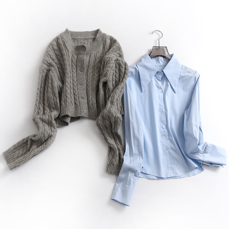 ◆素材: (シャツ)綿、ポリエステル、(カーディガン)アクリル
