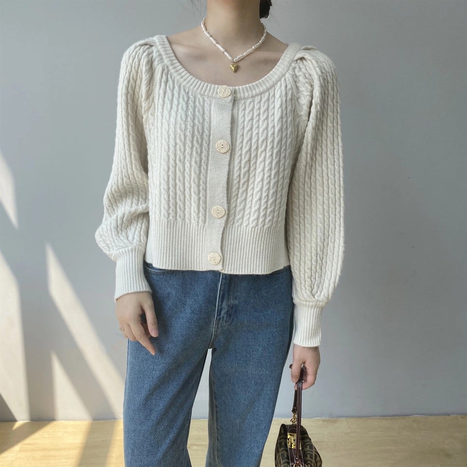 Shoulder pick lantern sleeve knit cardigan TO0680