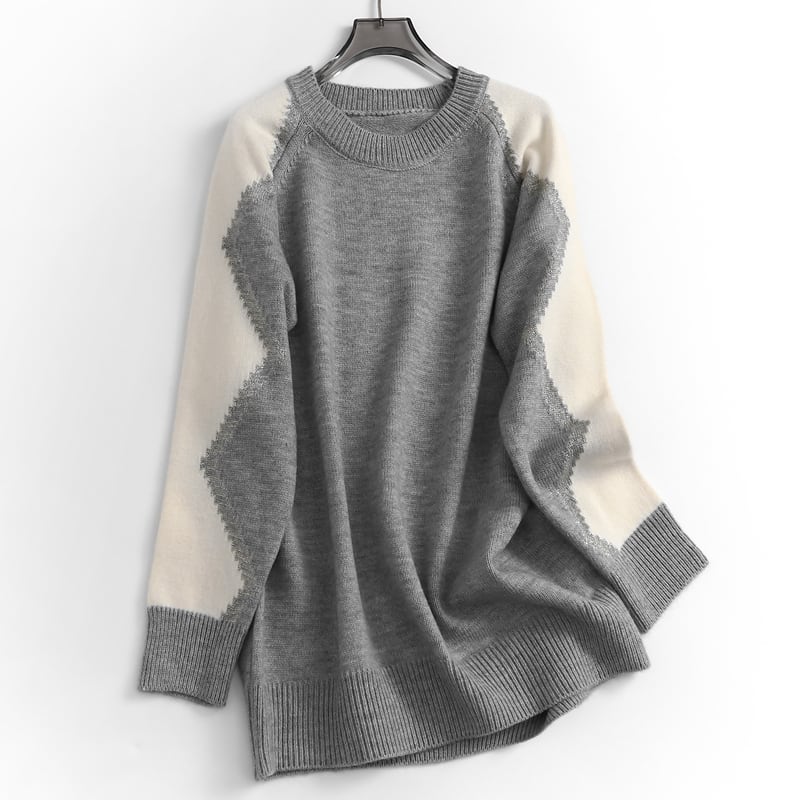 袖のジグザグが可愛いラグランスリーブニットセーター