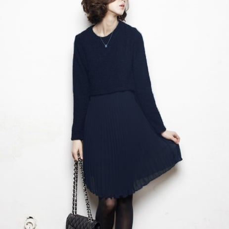 上品でフェミニンな雰囲気が漂うドッキングプリーツワンピース