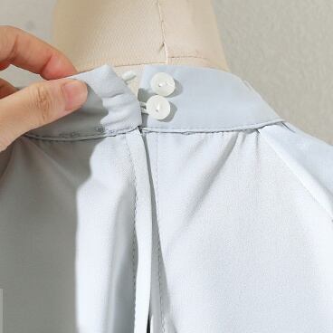 三角に開いた胸元が素敵なランタンスリーブブラウス