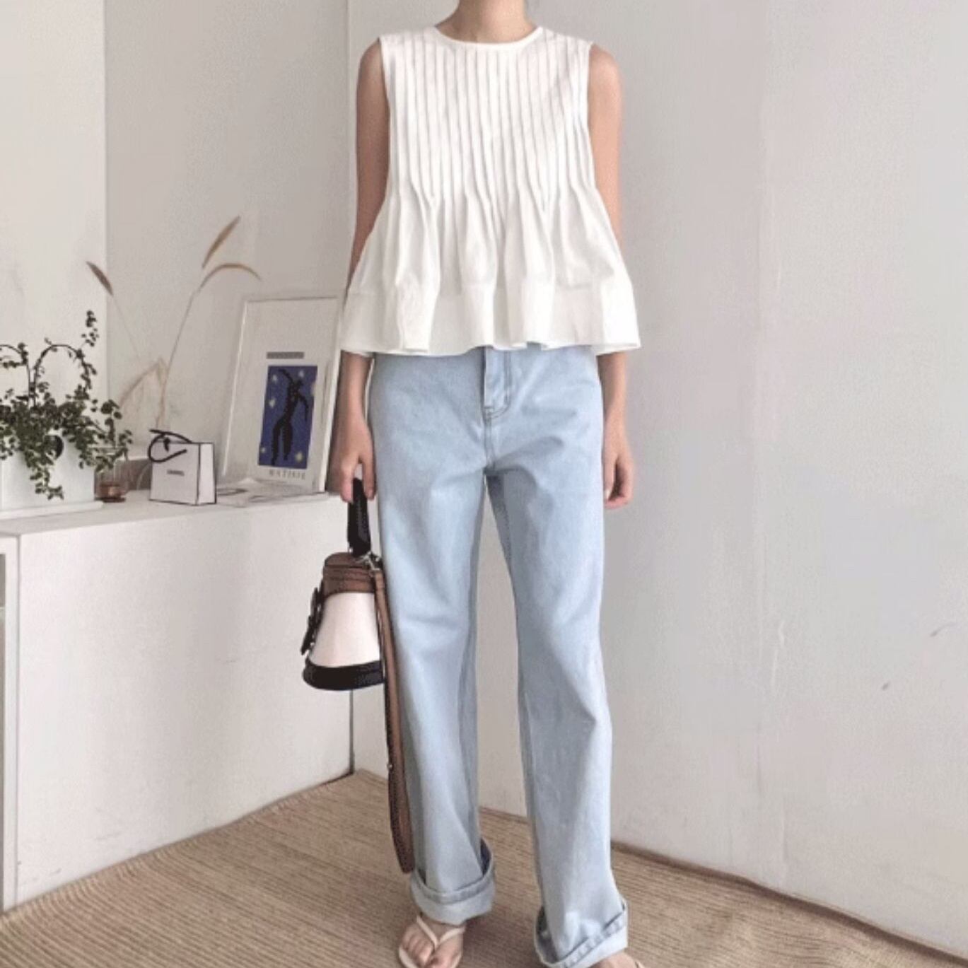 ふんわり可愛いペプラムノースリーブプリーツブラウス
