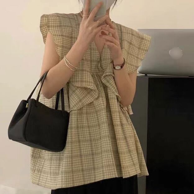 袖フリルが可愛い爽やかなチェック柄チュニック