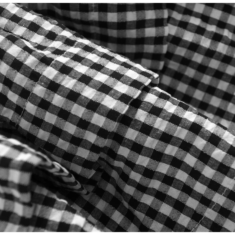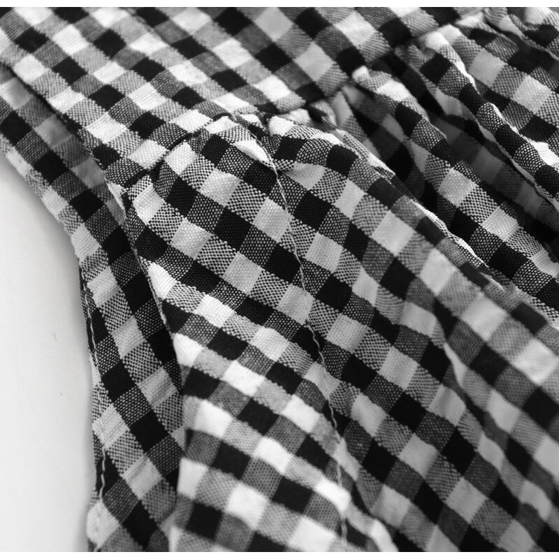チェック柄にフリルがあしらわれた可愛らしいスリーブレストップス