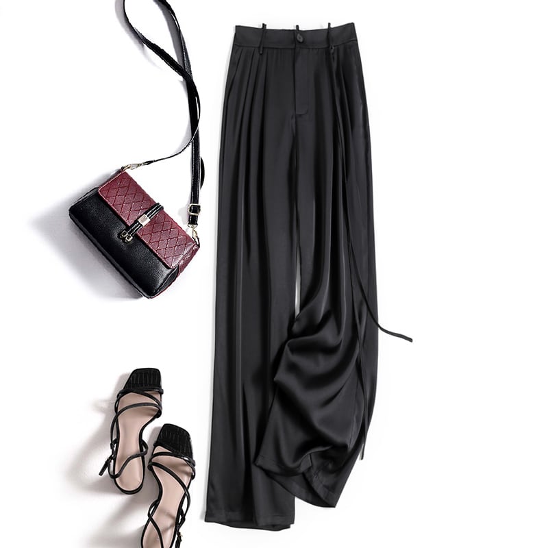 大人っぽさ漂うサテンワイドパンツ