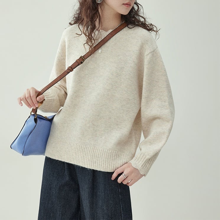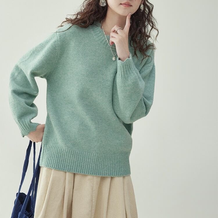 ギザギザネックとバルーンスリーブが可愛いニットプルオーバー