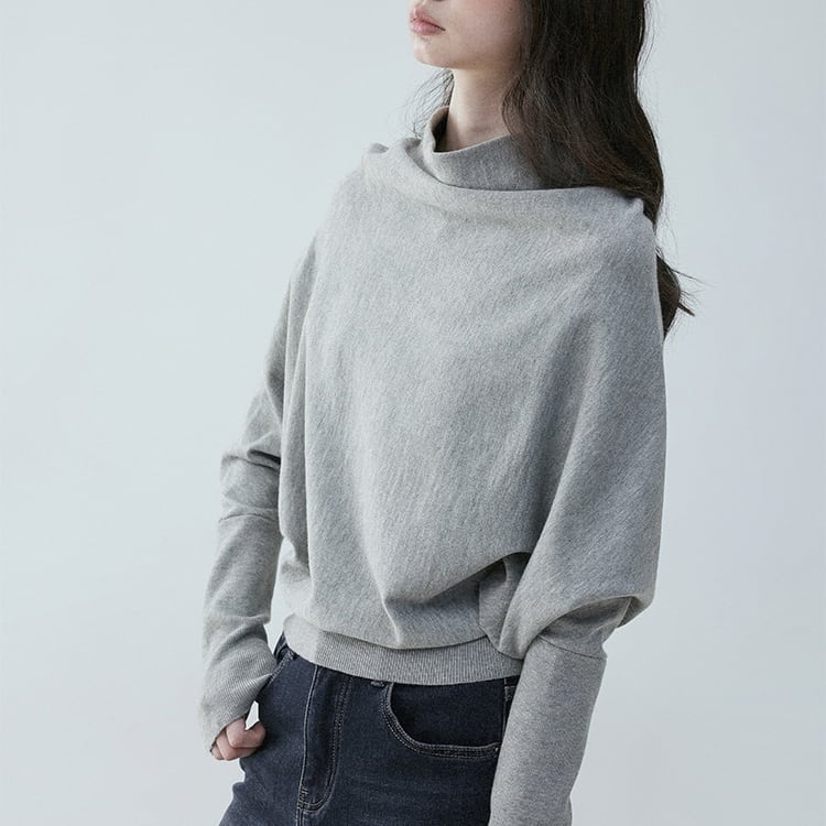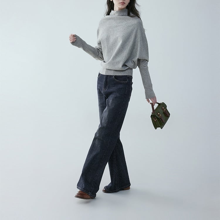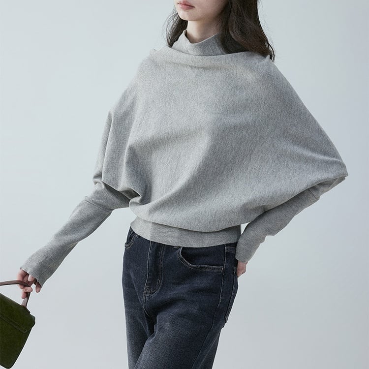 上品な雰囲気を演出するハイネックデザインが素敵なバルーンスリーブニット
