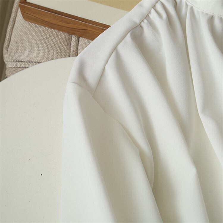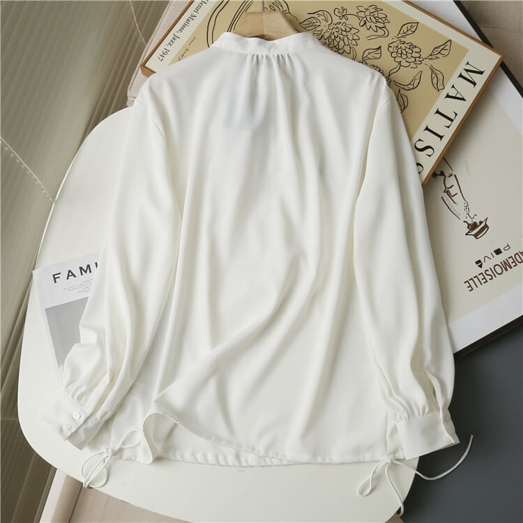 すっきりとしたスタンドカラーと、程よくゆとりのあるシルエットが魅力のブラウス